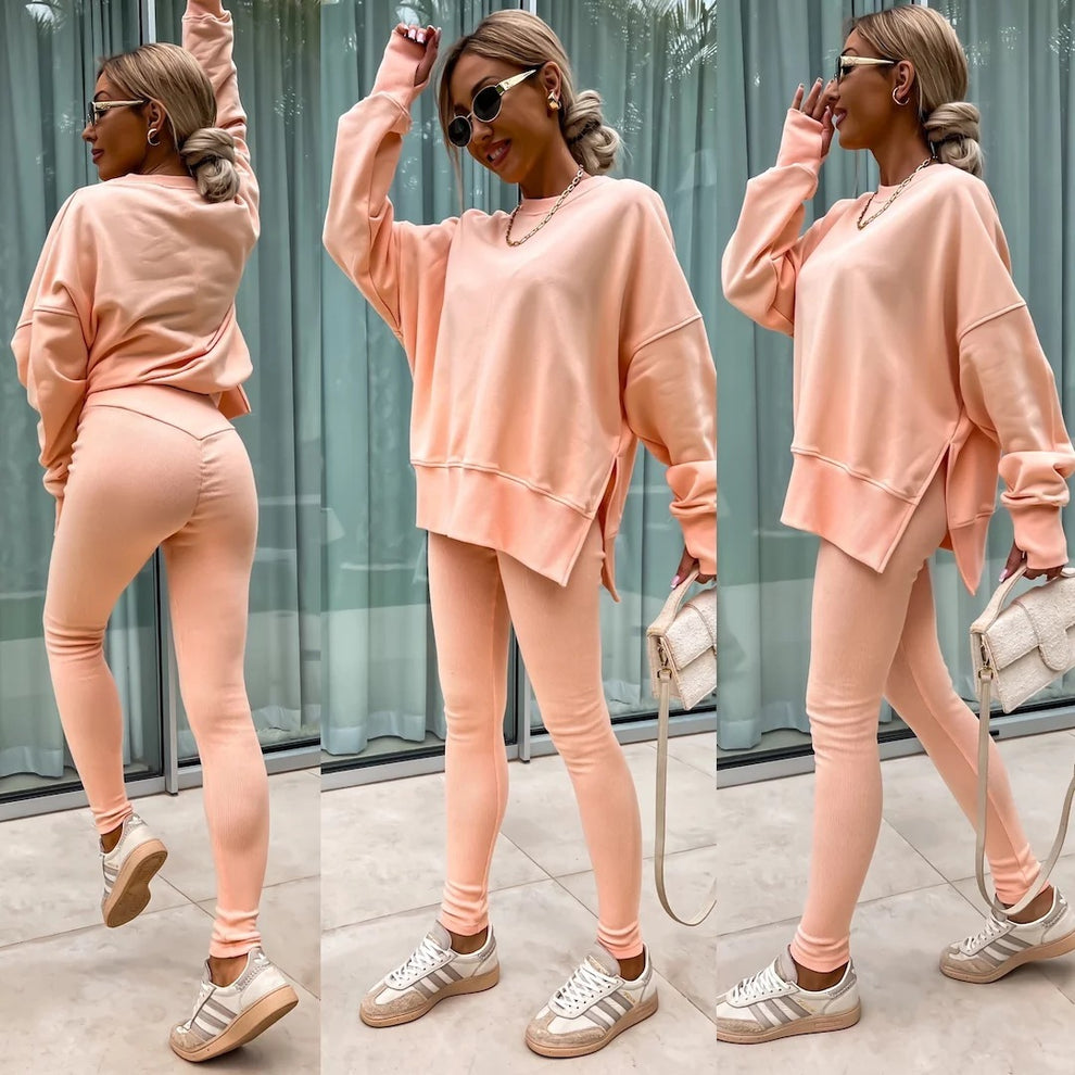 - Long Sleeve Crew Neck Split Top Tight Trousers